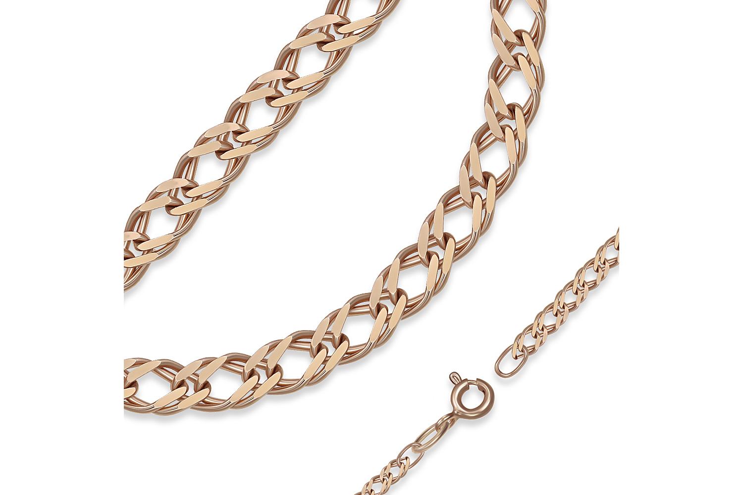 Мастера компании NEWGOLD, приложив всё свое мастерство и искусство, создали для Вас на нашем собственном производстве Цепь плетение двойной ромб ⌀ нити 0,35 мм из красного золота.