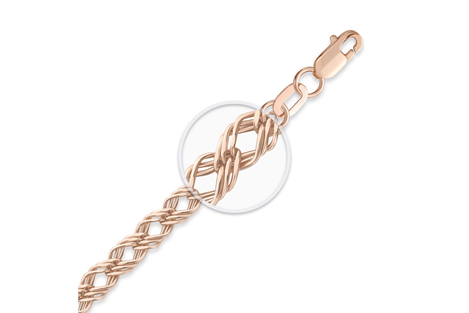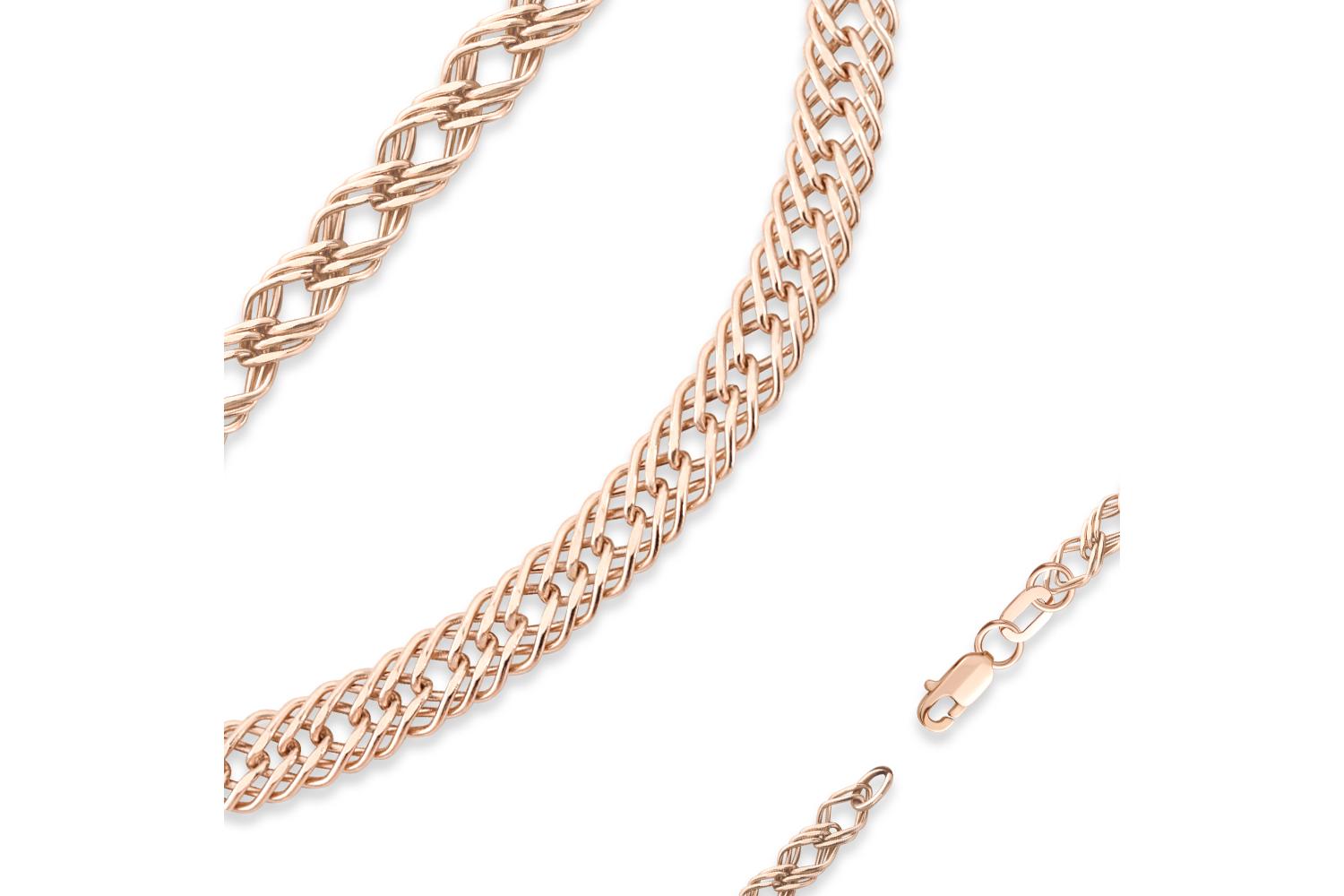 Мастера компании NEWGOLD, приложив всё свое мастерство и искусство, создали для Вас на нашем собственном производстве Цепь плетение тройной ромб ⌀ нити 0,50 мм из красного золота.